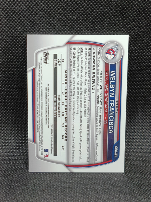 Welbyn Francisca - 2023 Bowman Chrome 1st Bowman Auto Refractor /499 - Cleveland Guardians