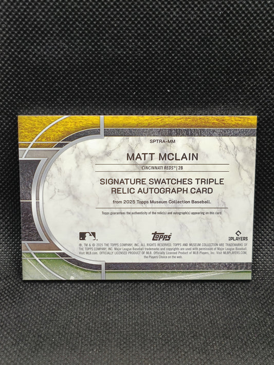 Matt McLain - 2025 Topps Museum Triple Relic Auto Amethyst /75 - Cincinnati Reds