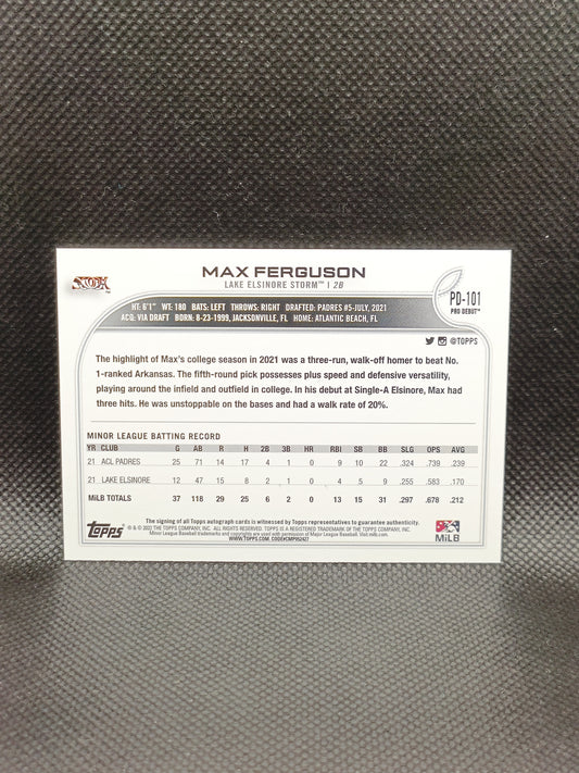 Max Ferguson - 2022 Topps Pro Debut Auto - Boston Red Sox