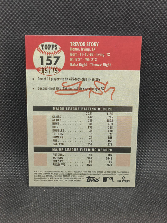 Trevor Story - 2022 Topps Chrome Platinum Anniversary Rose Gold Refractor /75 - Boston Red Sox
