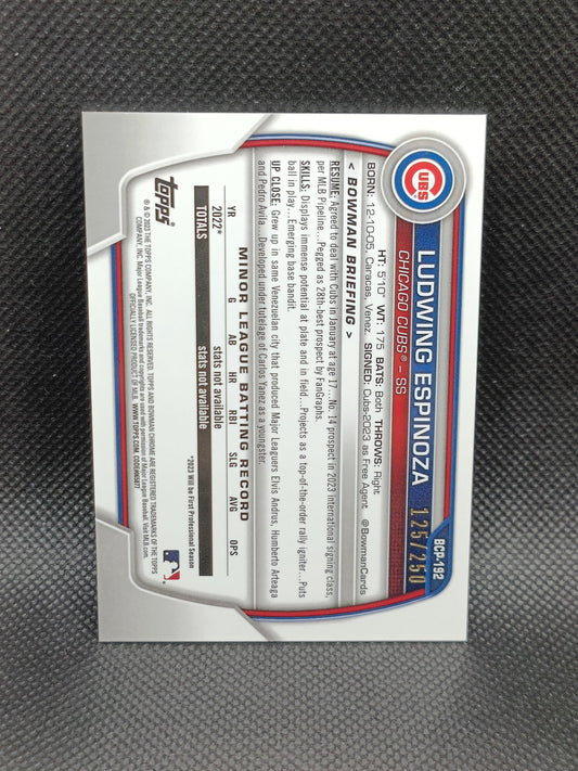 Ludwing Espinoza - 2023 Bowman Chrome 1st Bowman Purple Refractor /250 - Chicago Cubs