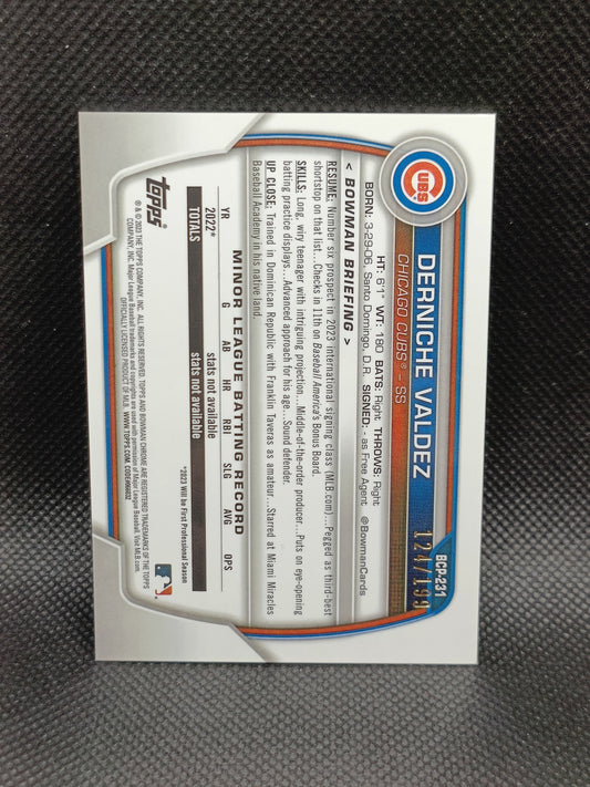 Derniche Valdez - 2023 Bowman Chrome 1st Bowman Pink Mojo /199 - Chicago Cubs