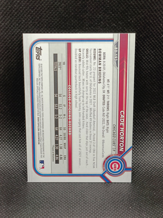 Cade Horton - 2022 Bowman Draft 1st Bowman - Chicago Cubs