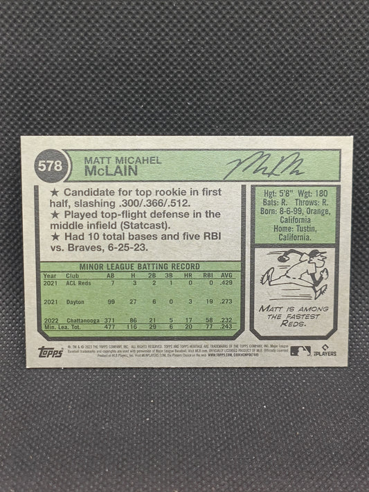 Matt McLain - 2023 Topps Heritage High Number Rookie - Cincinnati Reds