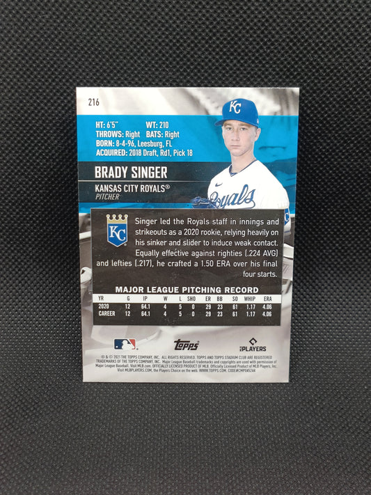 Brady Singer - 2021 Topps Stadium Club Rookie - Kansas City Royals