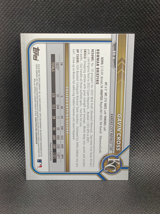 Gavin Cross - 2022 Bowman Draft 1st Bowman Sky Blue /499 - Kansas City Royals