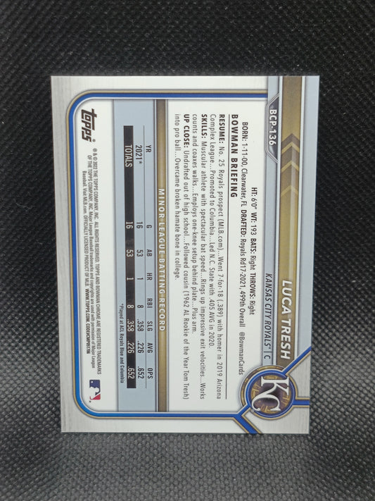 Luca Tresh - 2022 Bowman Chrome 1st Bowman Blue Shimmer Refractor /150 - Kansas City Royals