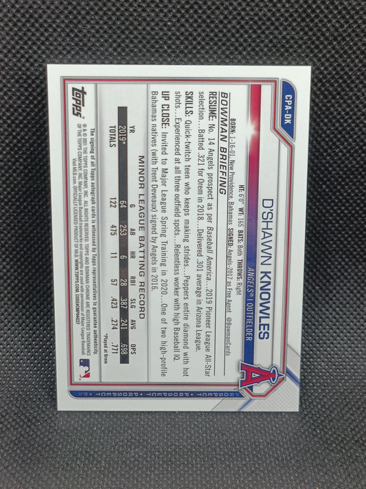 D'Shawn Knowles - 2021 Bowman Chrome 1st Bowman Auto Green Shimmer /99 - LA Angels