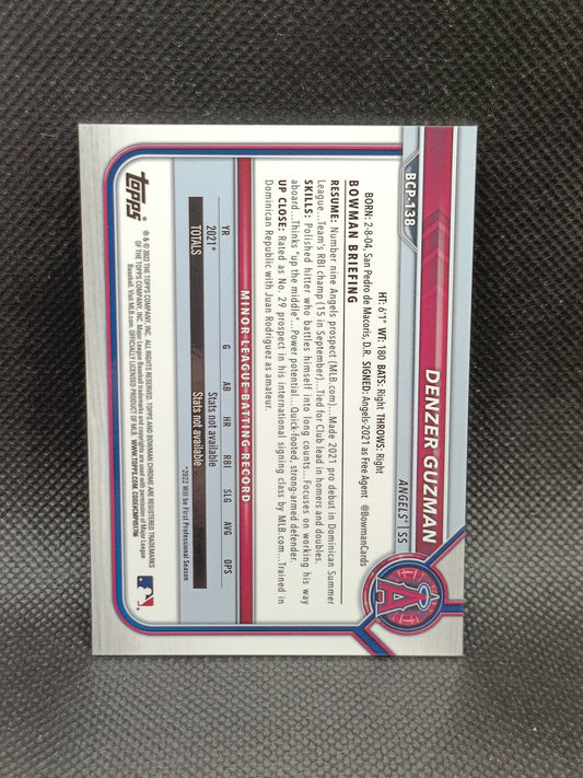 Denzer Guzman - 2022 Bowman Chrome 1st Bowman Green Mini Diamond Refractor /99 - LA Angels
