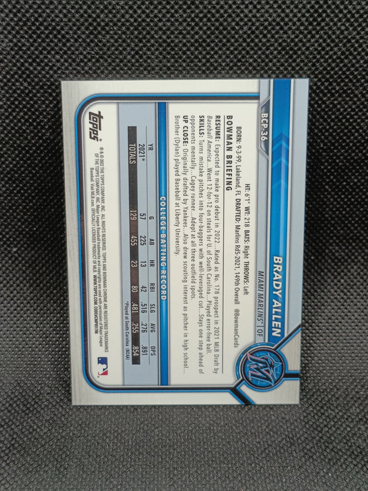 Brady Allen - 2022 Bowman Chrome 1st Bowman Aqua Shimmer Refractor /125 - Miami Marlins