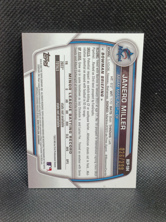 Janero Miller - 2023 Bowman Chrome 1st Bowman Purple Mojo Refractor /299 - Miami Marlins