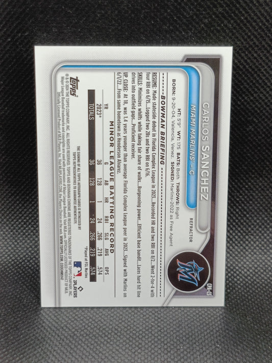 Carlos Sanchez - 2024 Bowman Chrome 1st Bowman Auto Refractor /499 - Miami Marlins