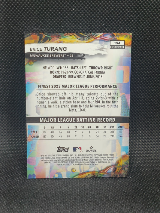 Brice Turang - 2024 Topps Finest Sky Blue Refractor /250 - Milwaukee Brewers