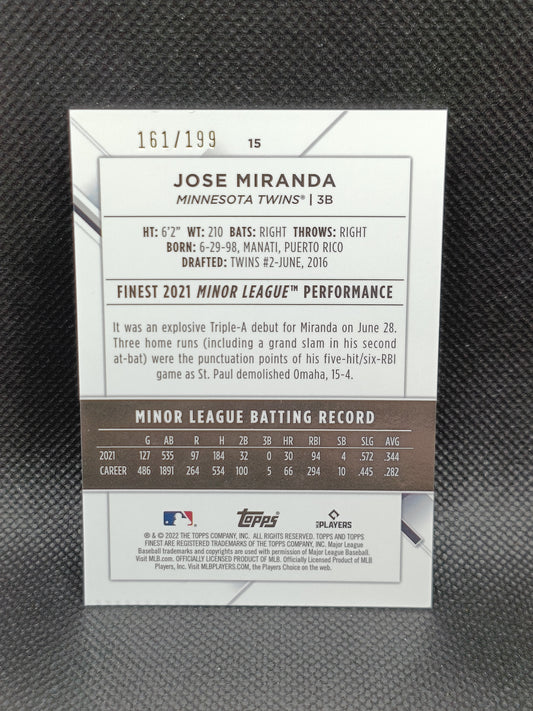 Jose Miranda - 2022 Topps Finest Rookie Aqua Refractor /199 - Minnesota Twins