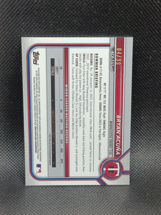 Bryan Acuna - 2022 Bowman Chrome 1st Bowman Auto - Minnesota Twins