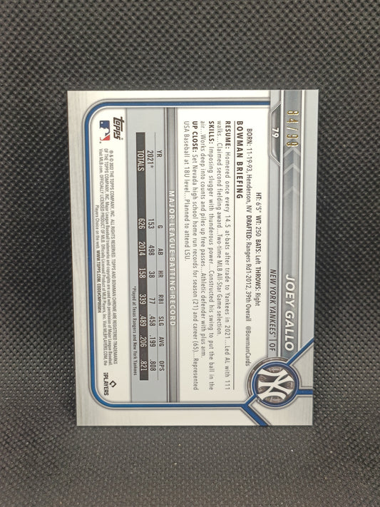 Joey Gallo - 2022 Bowman Chrome Green Refractor /99 - New York Yankees