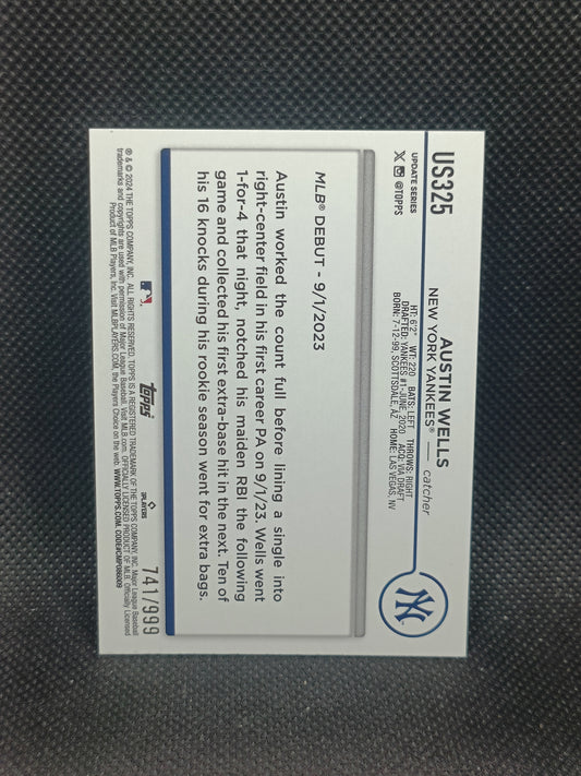 Austin Wells - 2024 Topps Update Series Rookie Debut Blue Holofoil /999 - New York Yankees