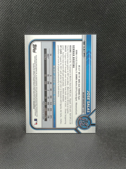 Jose Salas - 2022 Bowman Chrome Sapphire Edition Aqua /55 - Miami Marlins