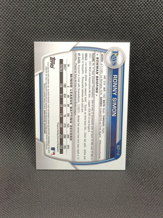 Ronny Simon - 2023 Bowman Chrome 1st Bowman Aqua Lunar Crater /125 - Tampa Bay Rays