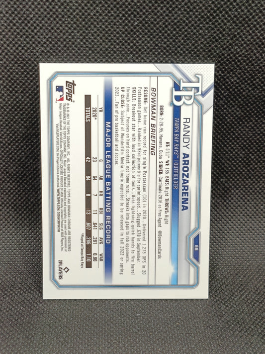 Randy Arozarena - 2021 Bowman Chrome Green Refractor /99 - Tampa Bay Rays