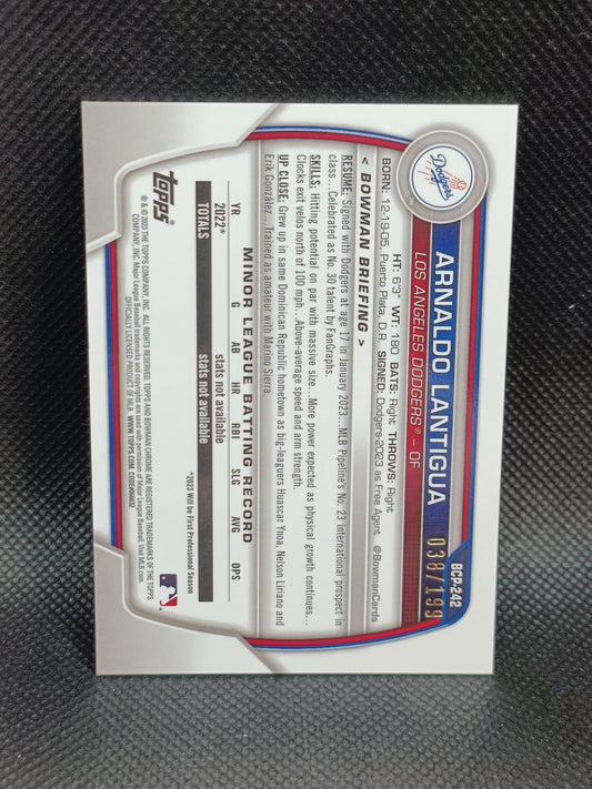 Arnaldo Lantigua - 2023 Bowman Chrome 1st Bowman Pink Mojo Refractor /199 - LA Dodgers