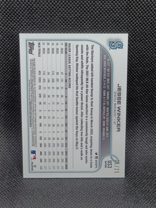 Jesse Winker - 2022 Topps Chrome Update Sapphire Orange /25 - Seattle Mariners