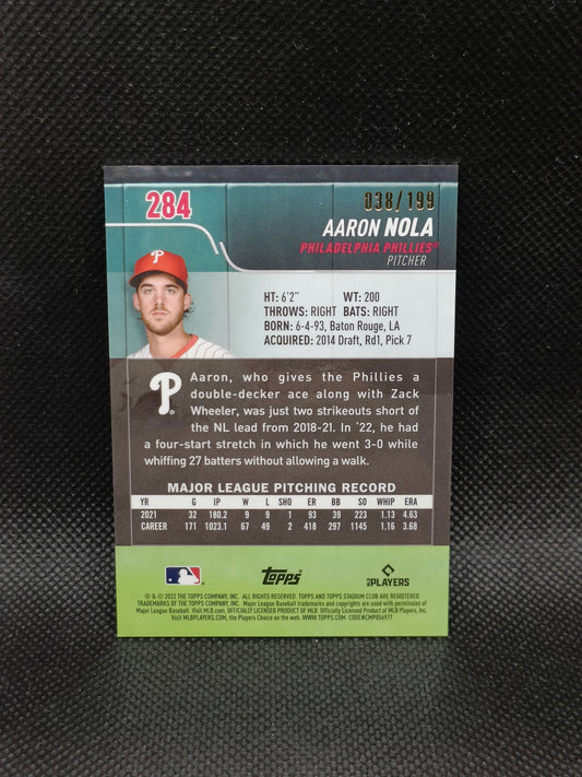 Aaron Nola - 2022 Topps Stadium Club Chrome Blue Refractor /199 - Philadelphia Phillies