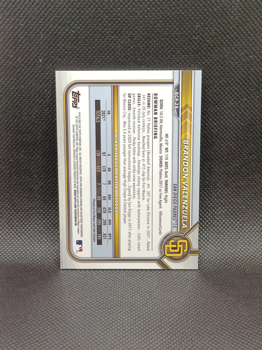 Brandon Valenzuela - 2022 Bowman Chrome 1st Bowman Green Mini Diamond Refractor /99 - San Diego Padres
