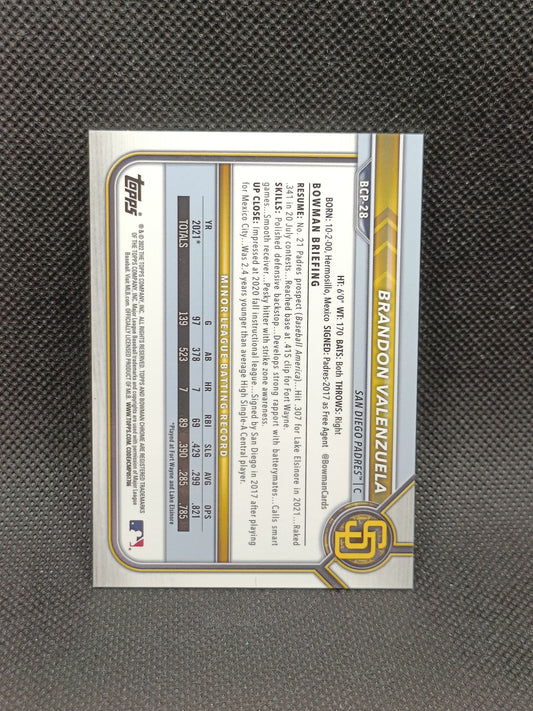 Brandon Valenzuela - 2022 Bowman Chrome 1st Bowman Blue Shimmer Refractor /150 - San Diego Padres