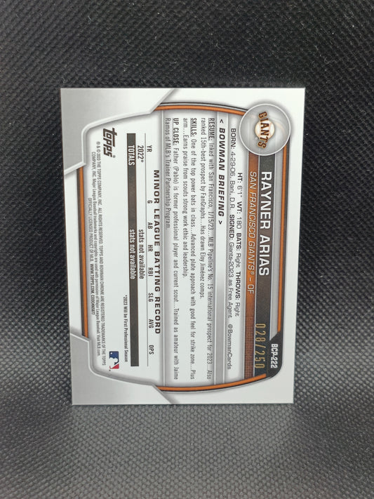 Rayner Arias - 2023 Bowman Chrome 1st Bowman Purple Refractor /250 - San Francisco Giants