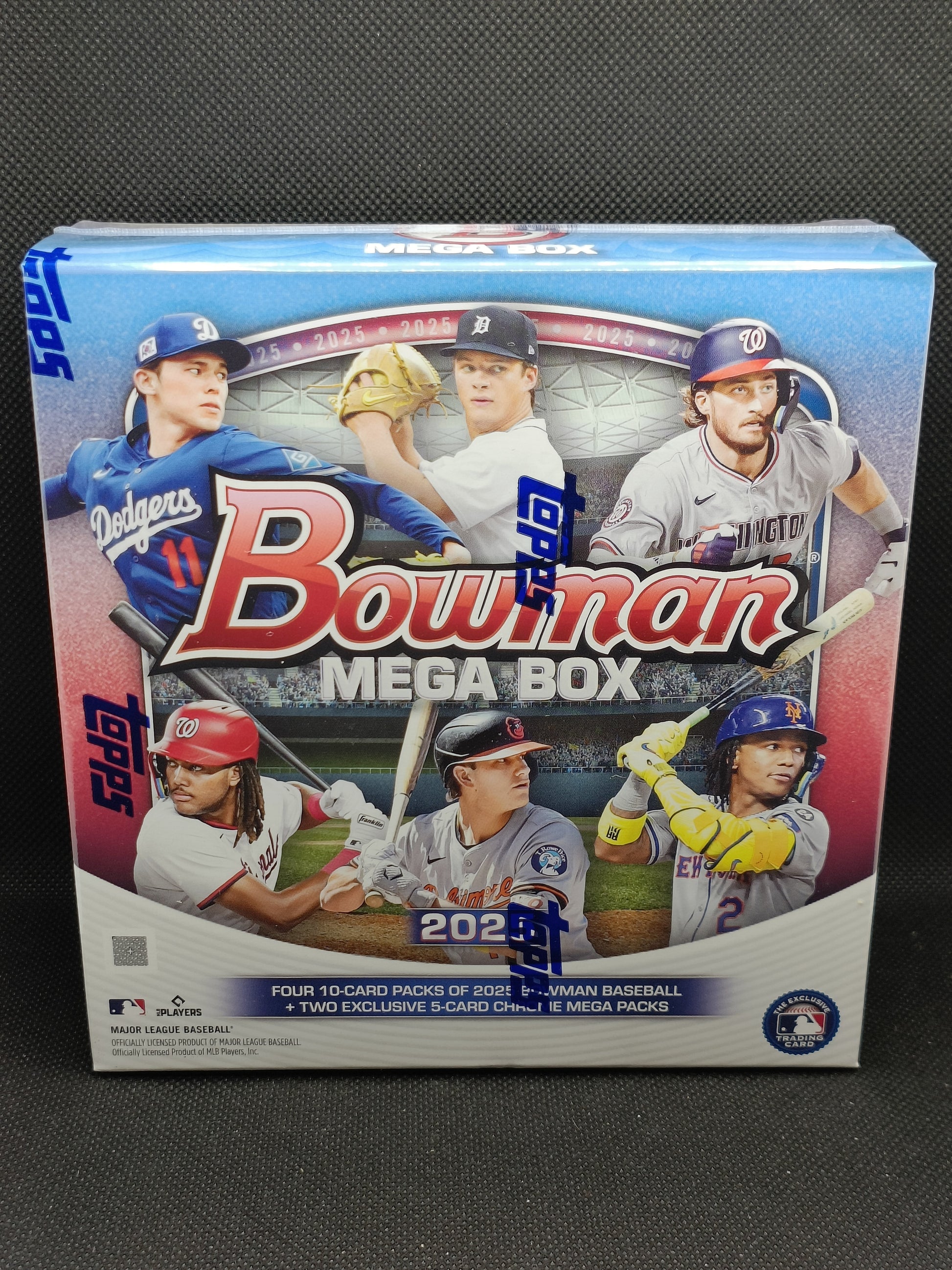 Step into the world of Bowman Baseball with this 50 card mega box! Offering collectors the chance to chase the major rookie and prospects of 2025, this is always a product not to be missed!