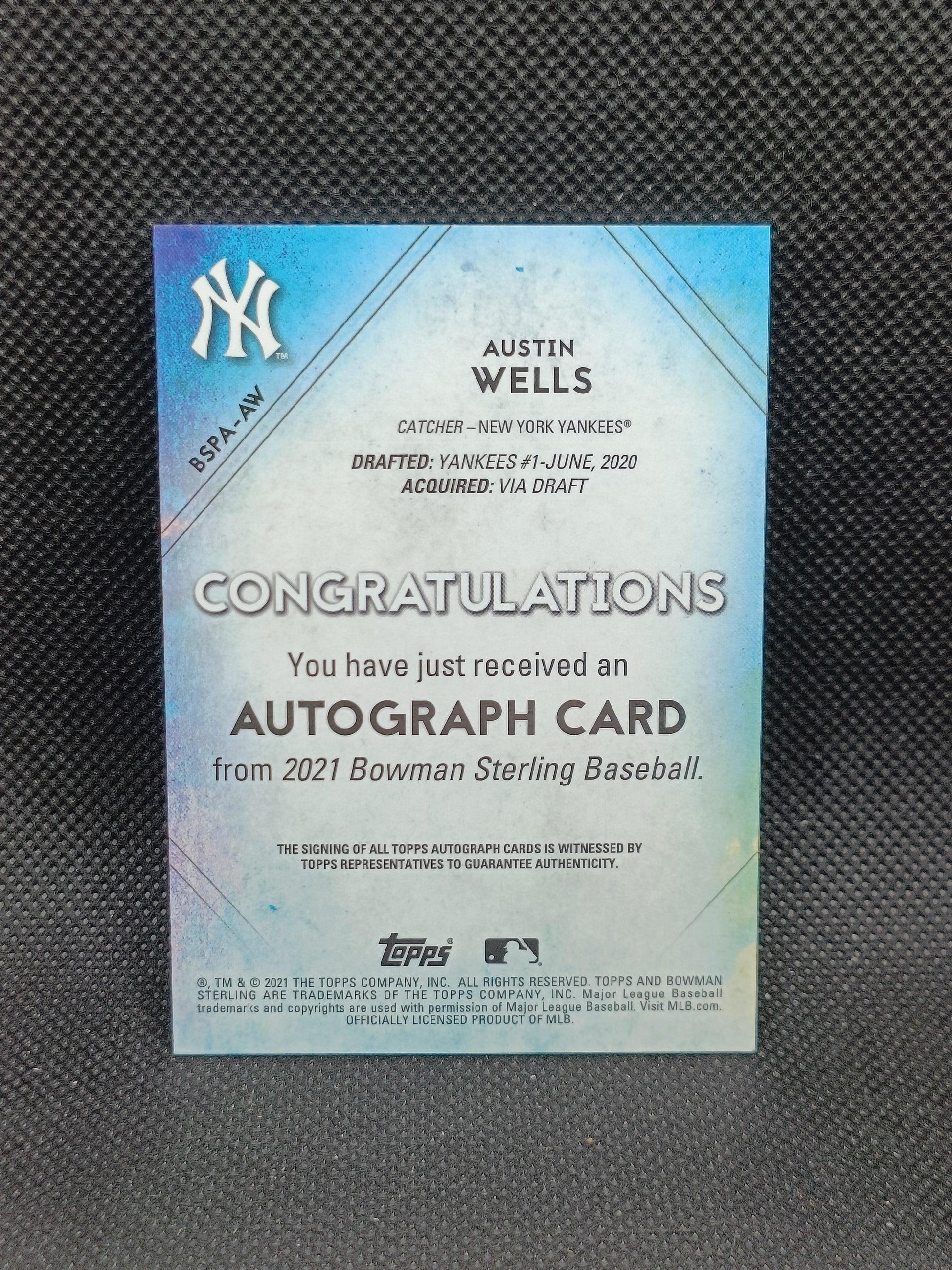 Austin Wells - 2021 Bowman Sterling Auto - New York Yankees