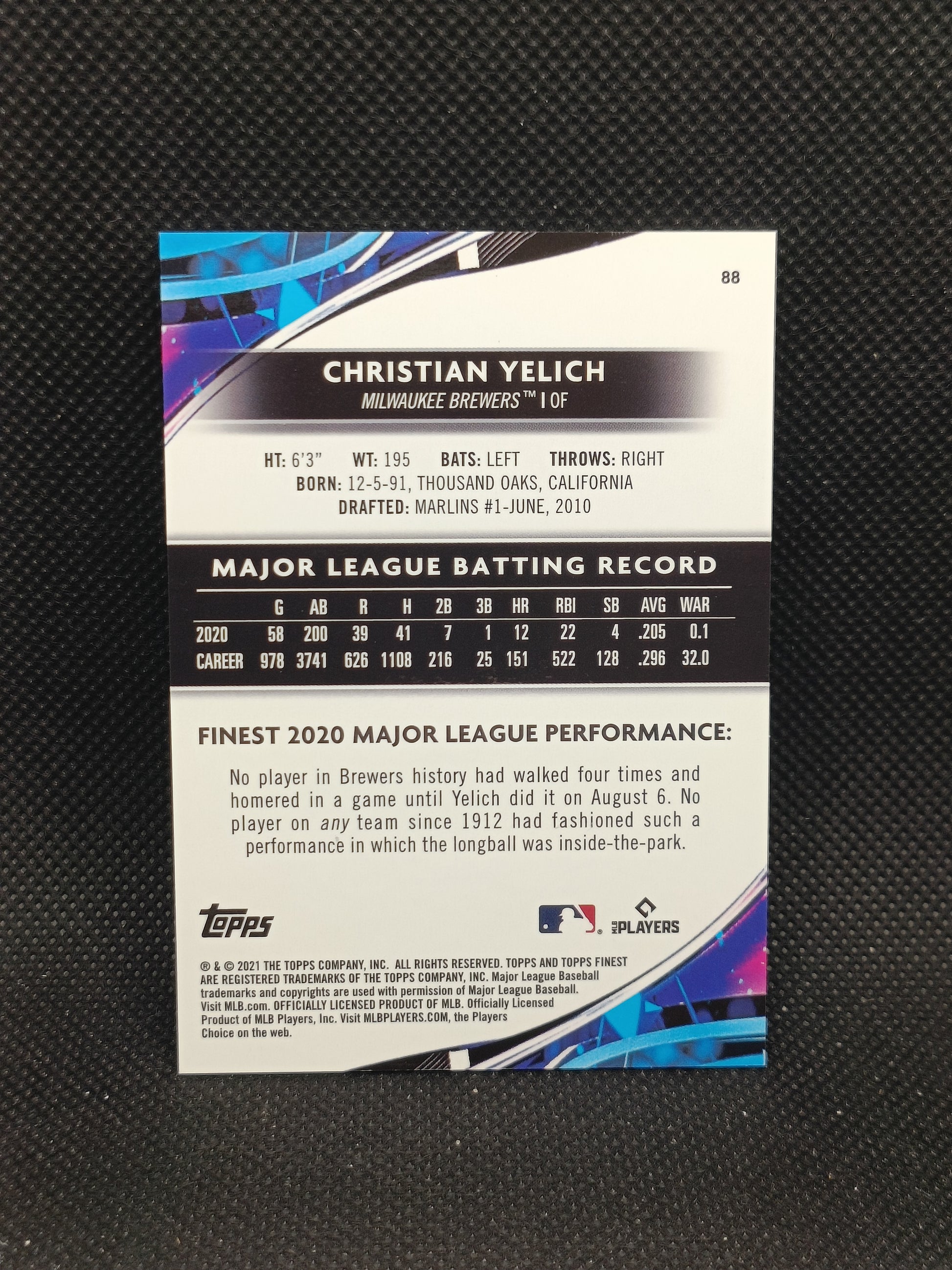 Christian Yelich - 2021 Topps Finest Purple Aqua Vapor Refractor /250 - Milwaukee Brewers