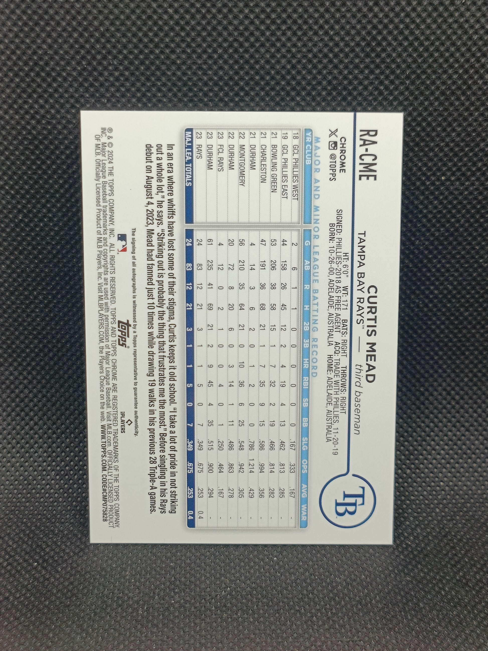 Curtis Mead - 2024 Topps Chrome Rookie Auto Blue RayWave /150 - Tampa Bay Rays