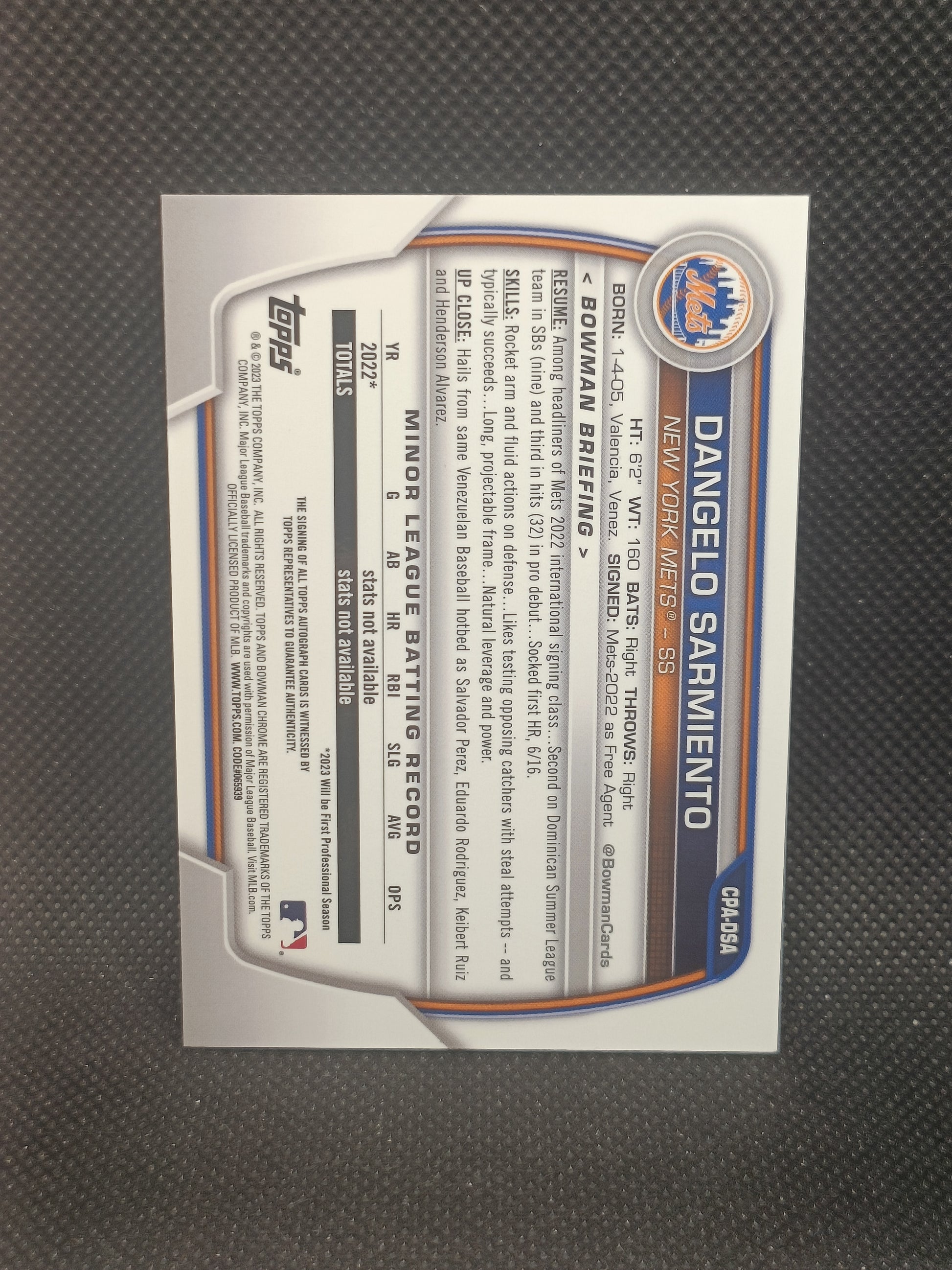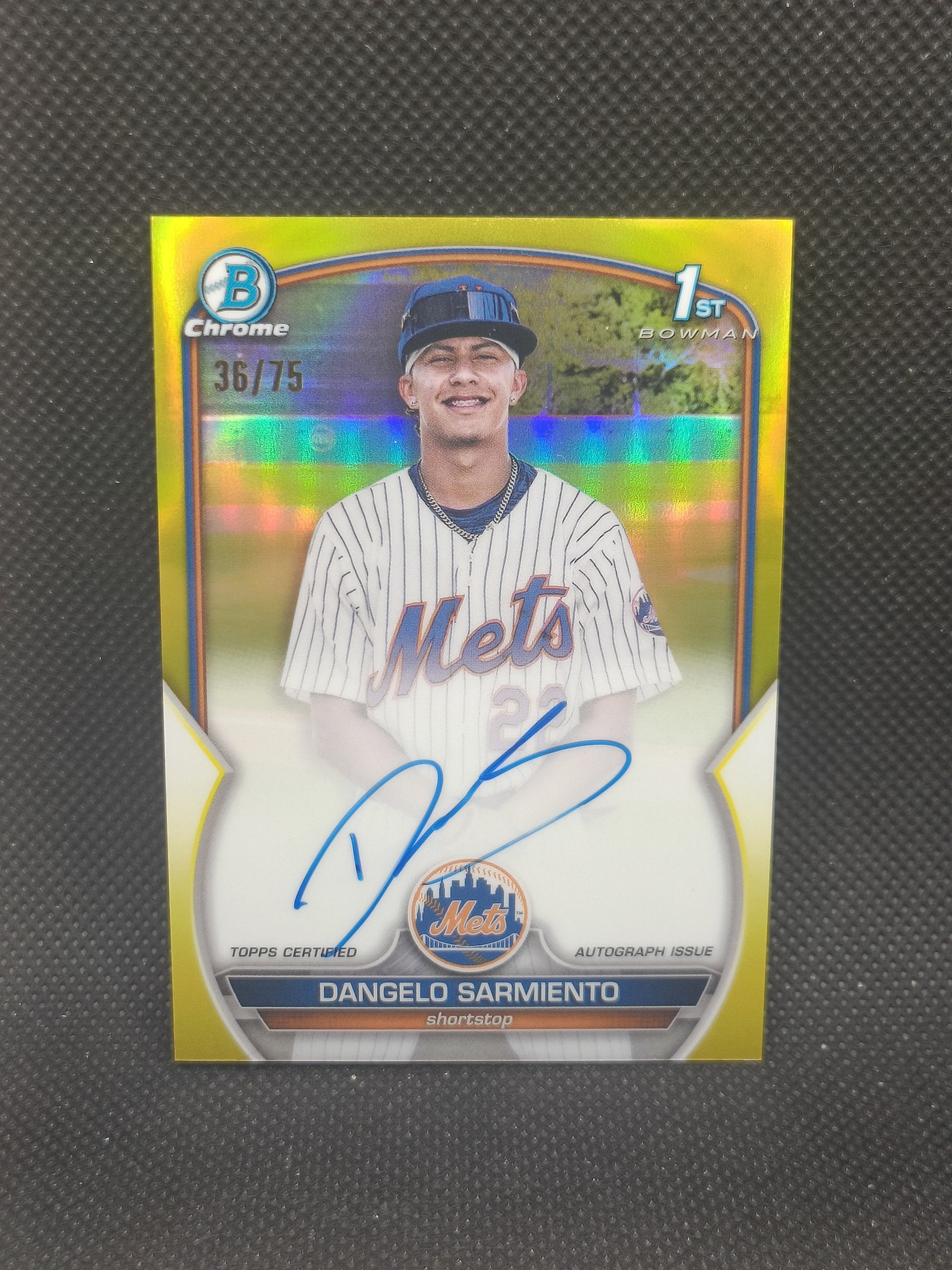 Dangelo Sarmiento - 2023 Bowman Chrome 1st Bowman Auto Yellow Refractor /75 - New York Mets