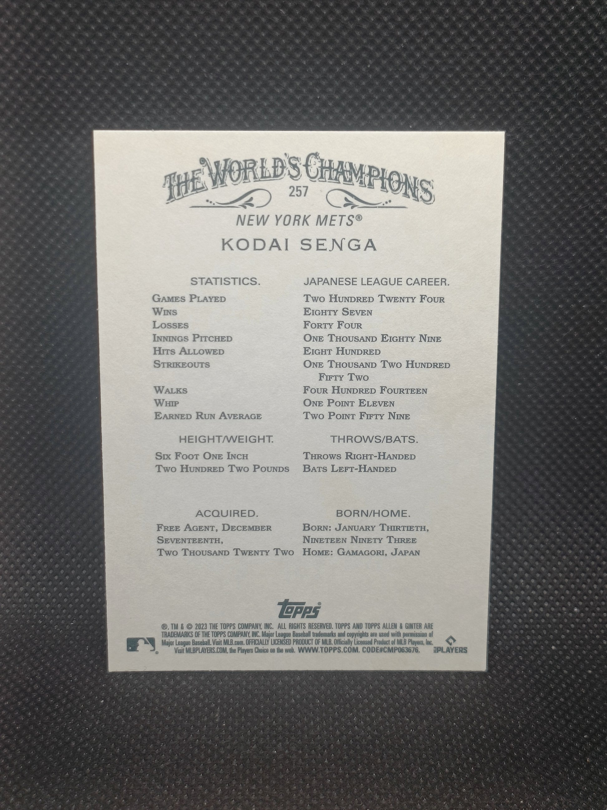 Kodai Senga - 2023 Topps Allen & Ginter Rookie - New York Mets