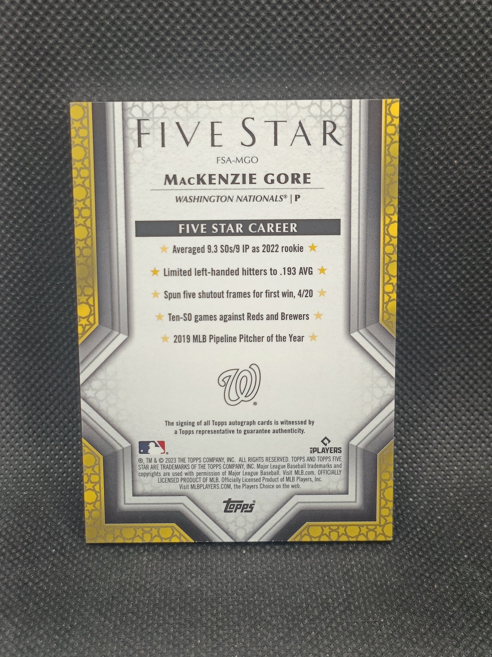 MacKenzie Gore - 2023 Topps Five Star Auto - Washington Nationals