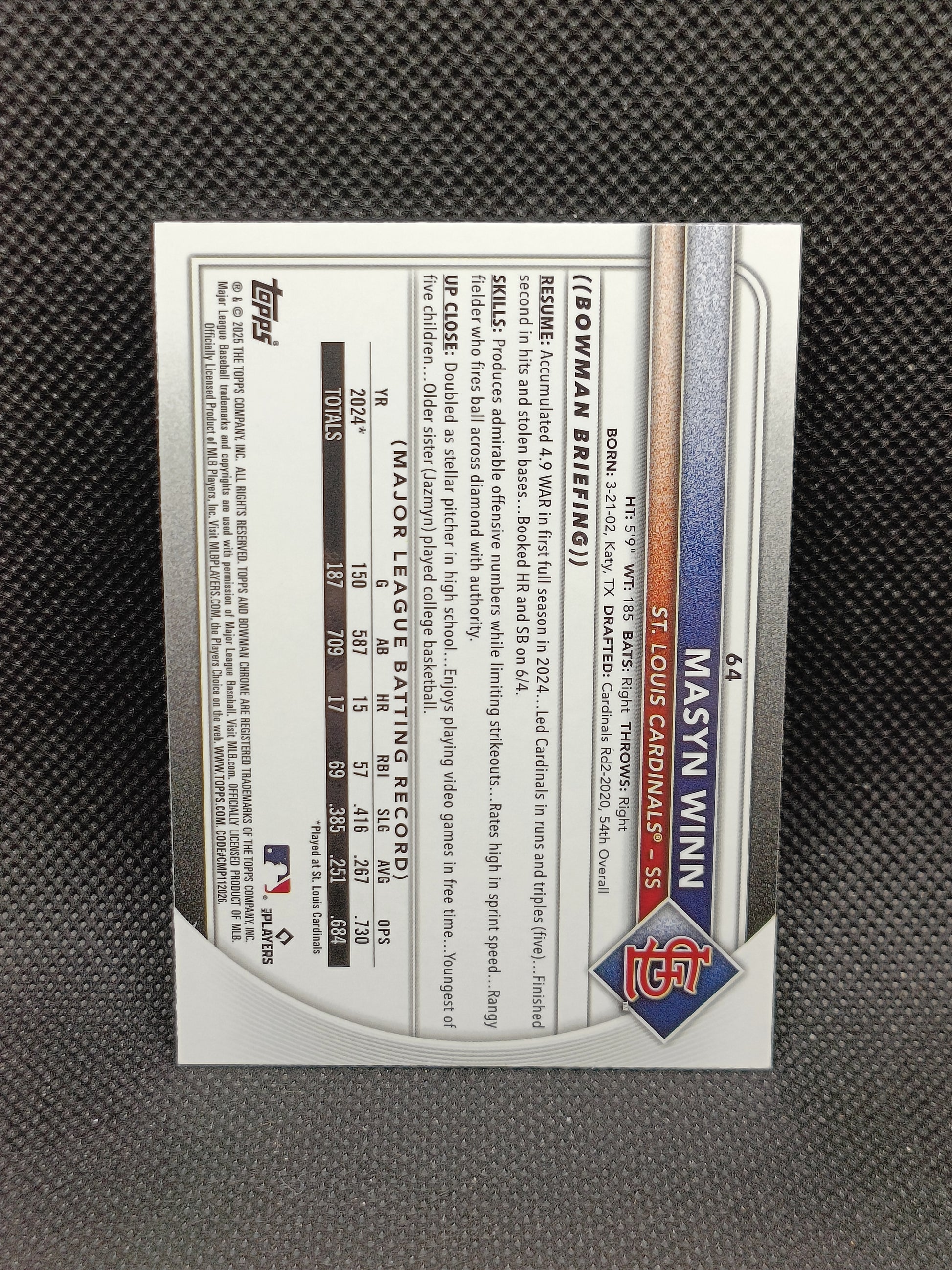 Masyn Winn - 2025 Bowman Chrome Fuchsia Refractor /299 - St Louis Cardinals