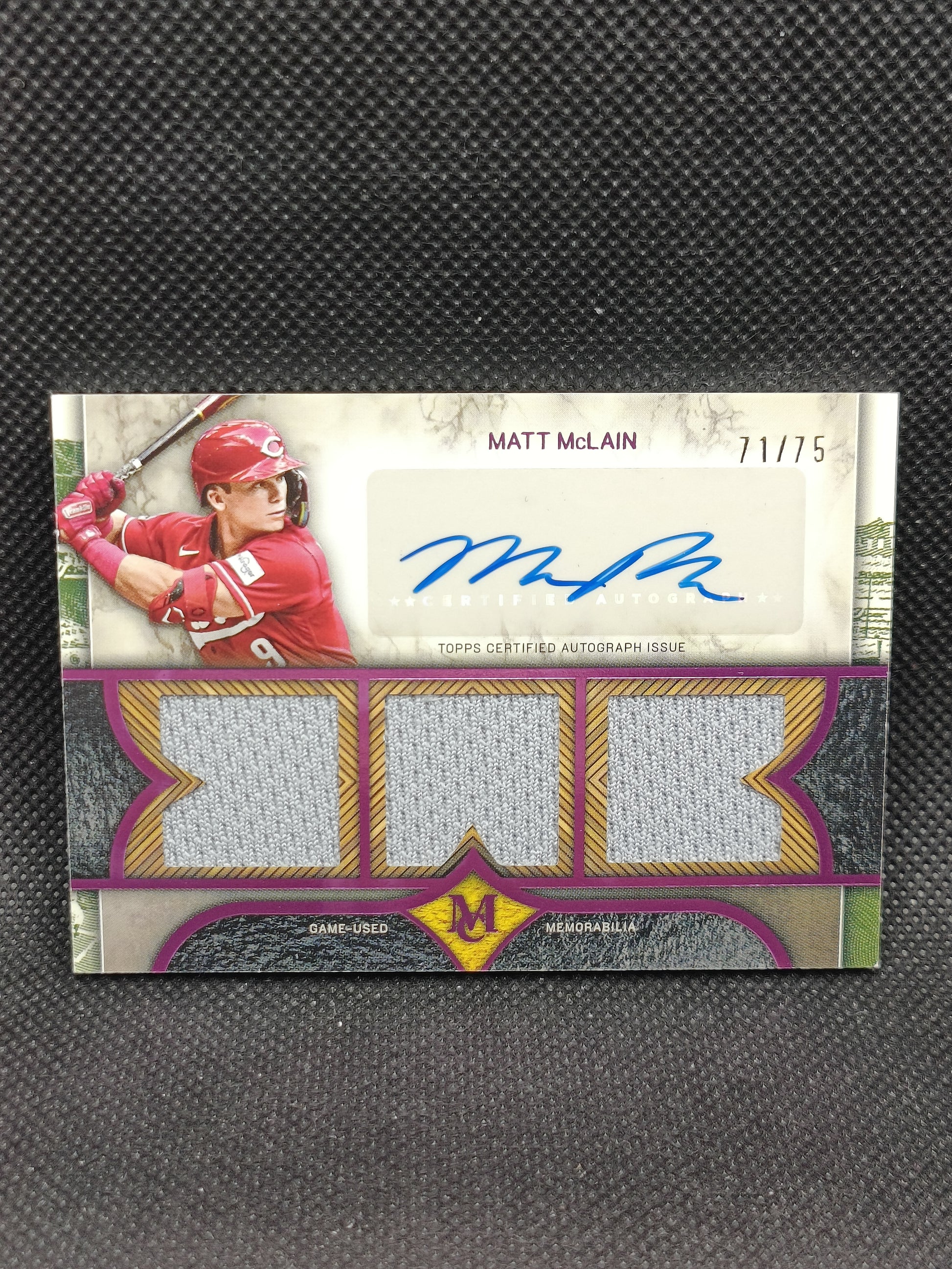 Matt McLain - 2025 Topps Museum Triple Relic Auto Amethyst /75 - Cincinnati Reds