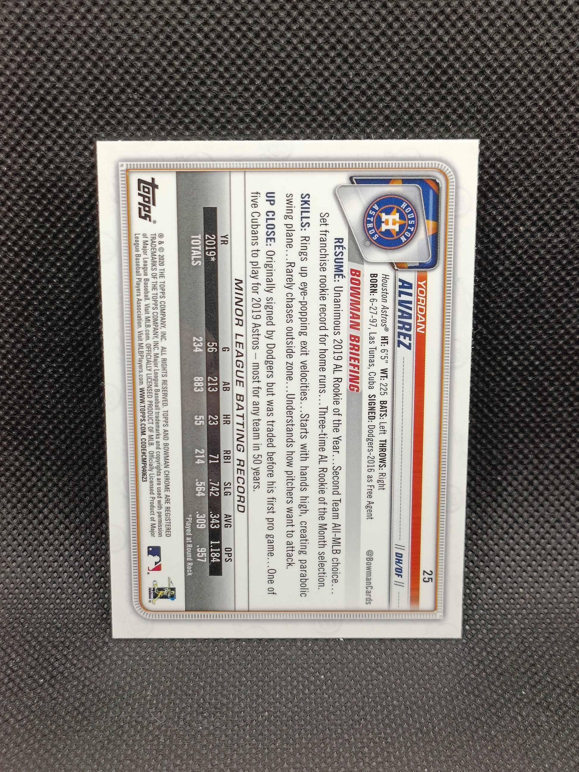 Yordan Alvarez - 2020 Bowman Chrome Rookie - Houston Astros