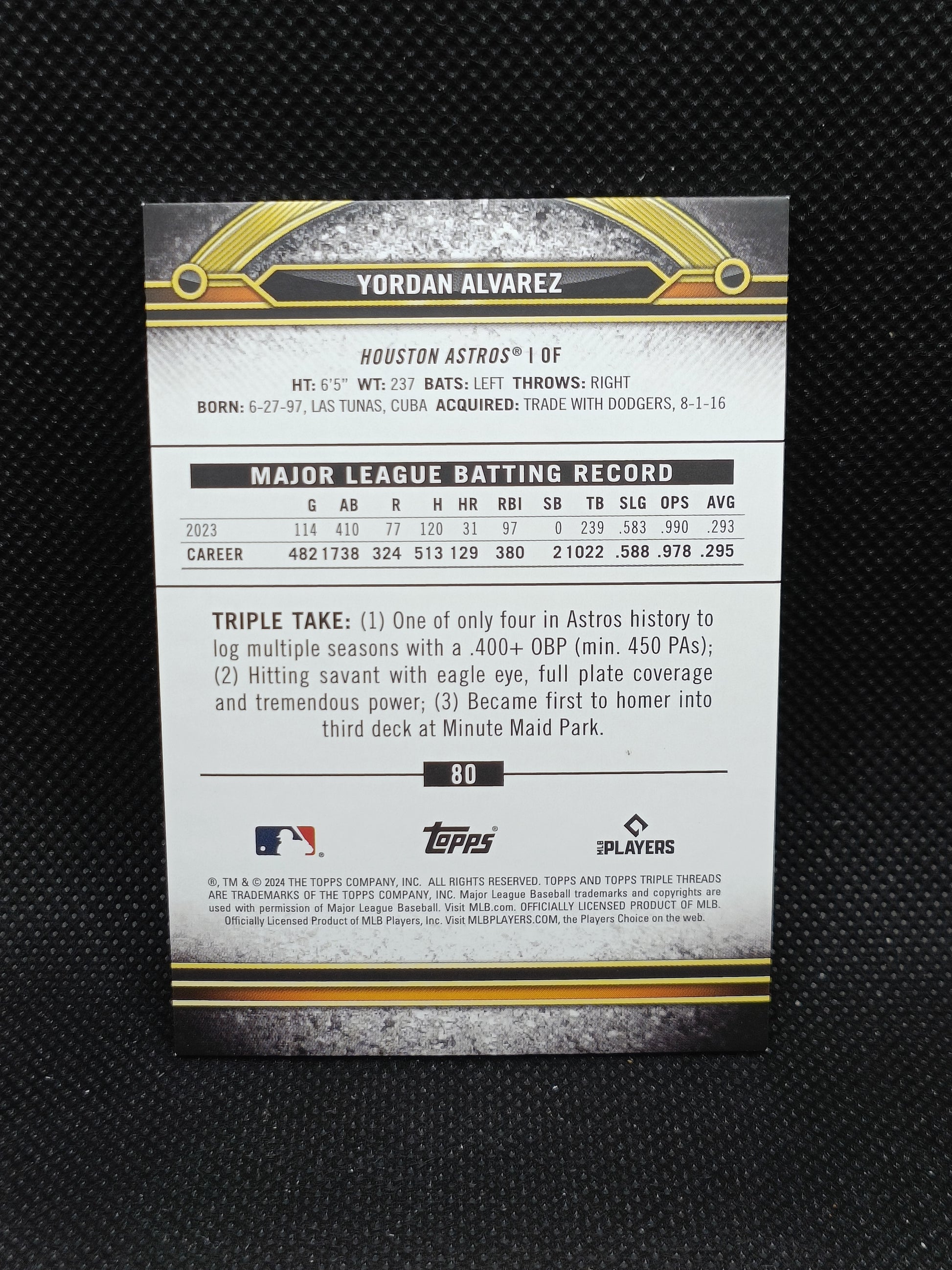 Yordan Alvarez - 2024 Topps Triple Threads Amber /199 - Houston Astros